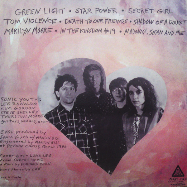 band [sonic youth:], guitar [guitars], vocals, drums Kim Gordon band [sonic youth:], guitar [guitars], vocals, drums Lee Ranaldo band [sonic youth:], guitar [guitars], vocals, drums Steve Shelley band [sonic youth:], guitar [guitars], vocals, drums Thurston Moore engineer Martin Bisi photography by [band photo] Lee Ranaldo producer Martin Bisi producer Sonic Youth written-by [all material by] Sonic Youth Phonographic Copyright (p) Blast First (2) Published By Rough Trade Music Engineered At BC Studio Engineered at Before Christ, March 1986. Cover girl: Lung Leg from SUBMIT TO ME a film by Richard Kern. Love to Carlos