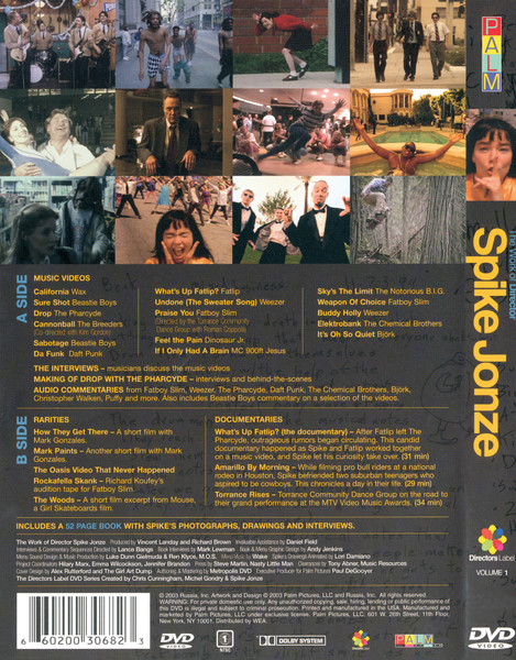 Other notes: Issued in a thick transparent plastic case. The Commentaries And Info section includes a Weblinks page, which lists the artists' websites. Track A6 features options to play the video in French language, or French language with English subtitles. Music on Track B9 plays over the DVD Credit And Thanks section.
