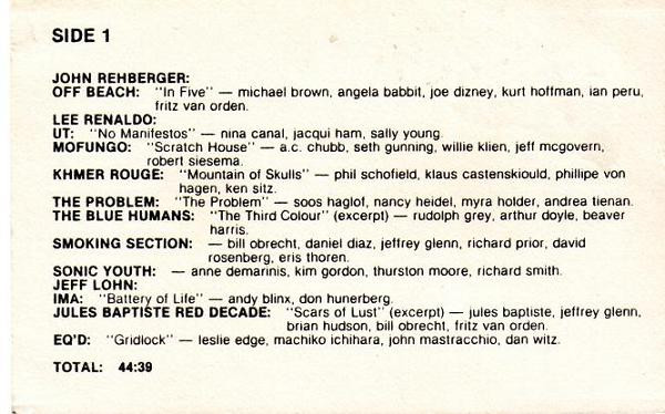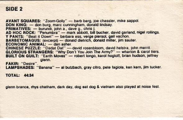 cover [cover design], design [cover design] Barbara Ess curated by [music curator] Thurston Moore executive-producer Josh Baer mixed by [live mix] Centour Sound producer [production], post production Anne Demarinis producer [production], post production Barbara Ess producer [production], post production Josh Baer producer [production], post production Kim Gordon producer [production], post production Thurston Moore Recorded At White Columns Noise Fest was an art and music event at White Columns N.Y.C., June 16-24th 1981, All material was recorded live at White Columns.